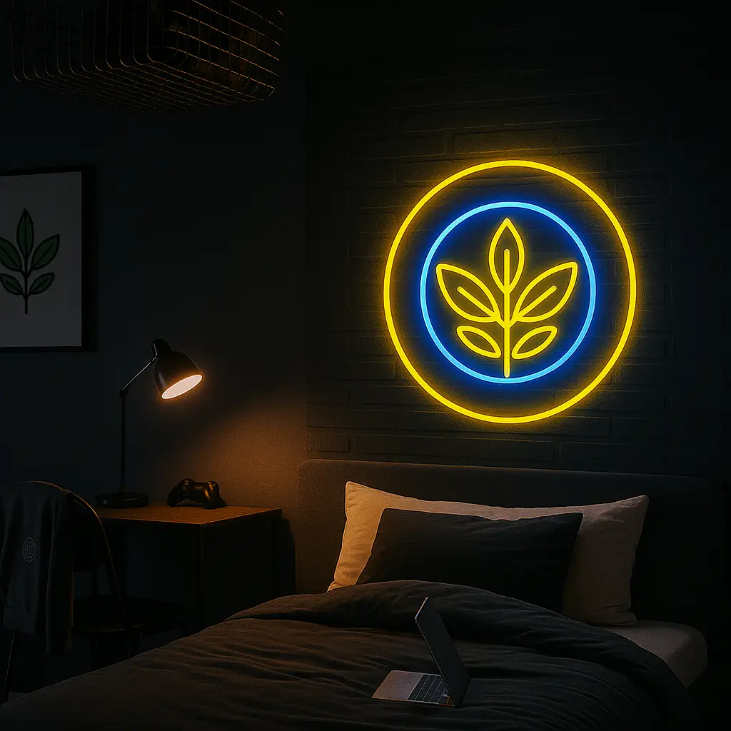 Klasik logolara ihtiyaç duymadan, sarı ve lacivertin eşsiz uyumunu yansıtan soyut yaprak ve dairesel neon formu, odanıza hem estetik hem de sportif bir hava katar. Minimalist tasarımı sayesinde her tarz dekorasyona uyum sağlar.
